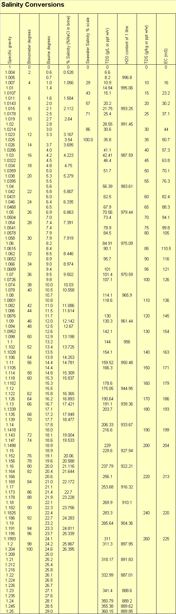 Παραδείγματος χάριν για μέτρηση 65°SAL η περιεκτικότητα αλατιού θα ήταν (65Χ26,4%)/100 = 17,16%