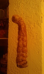 Τυλίγουμε την πανσέτα σε ρολό. Αν έχετε συνθετικό περίβλημα γύρω στους 10 πόντους διάμετρο τότε βάλτε μέσα την πανσέτα και δέστε την με σπάγγο σφιχτά όπως δένουν τα σαλάμια. Αν δεν έχετε περίβλημα τότε δέστε την πανσέτα χωρίς αυτό.