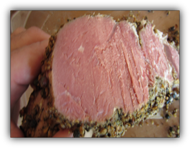 Ετοιμάστε την άλμη διαλύοντας τα υλικά της σε ζεστό νερό και μετά κρυώστε την στους 4°C. Εγχύστε άλμη ίση με το 12% του βάρους του κρέατος μέσα στο μοσχάρι σας (δηλαδή για το 1,5 Kg θέλετε 180 ml άλμης). Βυθίστε το κρέας στην υπόλοιπη άλμη μέσα στο ψυγείο για 3 ημέρες. Σκουπίστε το κρέας, καλύψτε το με τα μπαχαρικά και φουρνίστε το στους 52°C για 1 ώρα. Ανεβάστε θερμοκρασία στους 100°C